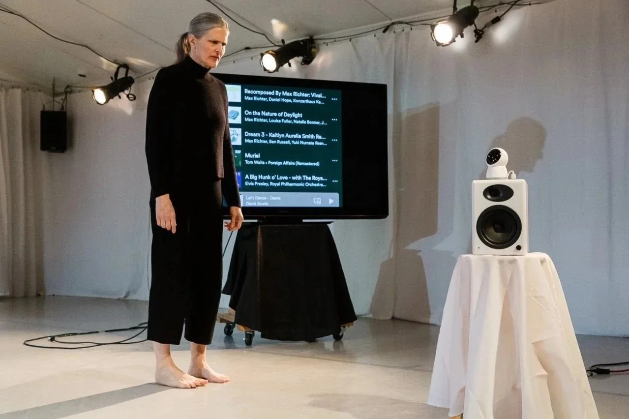 Equal parts academic lecture, conversation, and somatic investigation, Let’s Dance explores the role of dance in our culture, authenticity in the creative process, the neurochemistry of embodiment and what it means to know something in your bones. Using video, text and movement, Katherine Longstreth, along with collaborators Marilys Ernst and Jen Mitas, wonders what a future fully entangled with AI might mean for the physical self.